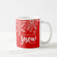 Diga obrigado em seu estilo com esta caneca de presente "Obrigado Snow Much". Design vermelho e branco impressionante com flocos de neve. Personalize com o nome da sua família ou empresa. Uma bela maneira de Natal festivo para mostrar seu apreço.