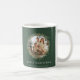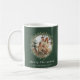 Café de Natal Mug com um visual elegante com a coroa de natal de aquarela com um modelo de foto da família em saga verde pode adicionar fotos da família, pode mudar a cor de fundo, o tipo de fonte e a cor como quiser.