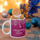 As luzes de cordas cor-de-rosa e brancas acendem as canecas de Natal com um design bonitinho de diversão caprichosa com nome de família para uma festiva época de Férias.