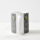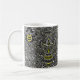 a caneca de café cerâmica resistente e clássica impressa com uma abelha intrincada inspirou o design em branco e em amarelo contra o preto.