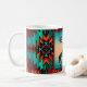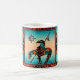 Esta é uma extremidade única de "um tipo" da caneca de café! Apresenta o fim nativo americano da trilha índia e cavalo em um fundo de turquesa e sunset laranja... cercado por uma borda sudoeste em Turquesa, Laranja e Preto!