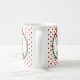 Elfo de Natal bonito segurando uma caixa de presentes no centro de uma coroa de pínus ornamentada com bolas vermelhas de Natal e corações vermelhos sobre fundo branco Mug. Aproveite a época mais maravilhosa e mágica do Ano!