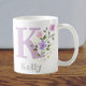 Caneca De Café First Initial Plus Name Kelly with Flowers