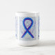 A caneca de anjo da guarda apresenta a pintura de um anjo azul e roxo da fita de reconhecimento. Fita de consciência azul e roxa significa suporte para a sensibilidade pediátrica a derrame e artrite reumatoide. As xícaras ou canecas de fita ou canecas com anjo de consciência azul e roxo podem ser personalizadas com mensagens personalizadas para fazer canecas com excelente para arrecadadores de fundos, presentes em copos de consciência ou outros eventos ou ocasiões especiais.