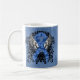 Fita azul paisley com ventos anjos e um padrão de filigrana. A fita azul paisley está associada à consciência da doença da tiroide. Janeiro é Mês de Consciência da Tiroide.