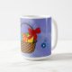 Mug com cesto de Páscoa, ovos e fita. Personalize o nome, a fonte, o tamanho e o posicionamento, o texto é totalmente editável. Também é possível alterar o tamanho da imagem.