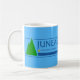 Mug with flag of city of Juneau, Alaska; blue flag with stylized illustration of trees