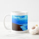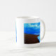 Uma bela fotografia de praia, que mostra a espinhosa margem costeira em ângulo baixo. Lindos céus azuis estão no fundo e belas águas azuis estão chegando a terra. Esses produtos de praia fariam presentes de excelente para amigos e familiares que são amantes de praia. Ou comprar um presente de praia que você vai amar.
