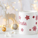 Com uma pequena inspiração vintage, esta linda caneca de Natal personalizada com seus flocos de neve vermelhos e brancos é perfeita para o feriado.