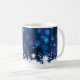 Uma caneca azul com floco de neve para qualquer ocasião. Todos os dias ou feriados, esta caneca de café ficará absolutamente linda e fará com que o seu café tenha um gosto muito melhor só por ser tão bonito.