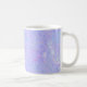Um design lindo de flocos cor-de-rosa, roxo e turquesa metálicos sobre fundo roxo.