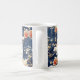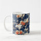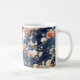 Esta bonito caneca de café apresenta um padrão japonês de chiiogami de flor de ameixa vermelha e branca em um fundo azul escuro.