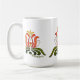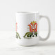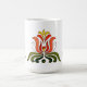 Estêncil de tulipas de safra húngara decora uma caneca jumbo em cores magyar de laranja e verde.