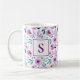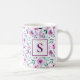 Flores Roxas Bonitas Monogramas Café Mug. Esta moderna design de padrão feminino apresenta rosas roxas de cor d'água bonitos. Personalize com seu próprio monograma personalizado inicial.