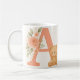 A charming floral alphabet A mug featuring soft pastel flowers and an adorable teddy bear.