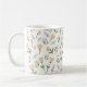 Aproveite o café da manhã com esta caneca moderna, com um padrão floral escandinavo de flores amarelas suaves e folhas verdes para uma vibração acolhedora e natural.