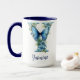 Uma caneca de café personalizada em tons de Azul com borboleta coordenada, apresentando o monograma da letra "Y". Personalize facilmente com seu nome ou crie um presente único para seus entes queridos. Espaço suficiente para adicionar uma citação ou mensagem adicional ou até mesmo um fundo. Esta caneca também vem em diferentes estilos e combinações de cores. Navegue pela coleção para ver exemplos deste tipo de fonte nos diferentes estilos e tamanhos de xícara.