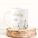 Caneca De Café Floral de Flor Selvagem Clássico Monograma