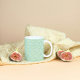 Caneca De Café Floral Verde Suave com Flores Amarelas Azuis Branc