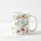 Esta Prata Floral Mug tem flores cor-de-rosa, flores amarelas, flores roxas e flores vermelhas em um campo de folhas verdes.