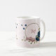 Linda caneca de café romântica com flores rosa azuis marinho e algumas folhas bonitas .