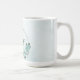 Caneca de café única com flores azuis românticas e algumas folhas verdes lindas.