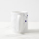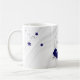 Lindas flores azul royal e folhas cinza prateado em caneca de café com fundo de mármore