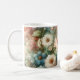 Bonito aquarela, caneca de café floral com flores azuis, rosa e brancas.