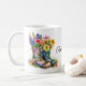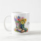 Esta imagem de aquarela das flores crescendo em botas é uma imagem alegre para a sua xícara matinal de café. Ou uma xícara de chá à tarde. Ou uma xícara de chocolate quente perto do fogo da noite. O nome na caneca pode ser alterado. Imagem assistida por IA adquirida com uso comercial. Trabalho de arte: MokoDE