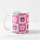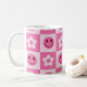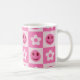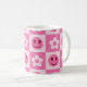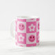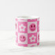 Estas são flores giras retrógradas e rostos felizes em pranchas de xadrez brancas e saltos cor-de-rosa.