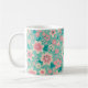 Esta caneca apresenta um design delicioso de flores cor-de-rosa no cheio florado contra um fundo azul nítido. É uma maneira encantadora de começar seu dia ou aproveitar uma xícara relaxante de chá.