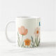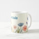 Bonito flores cor-de-rosa e azul pastel em um fundo creme criam uma linda caneca que você vai amar. Personalize com seu nome em azul. Muito fofo!