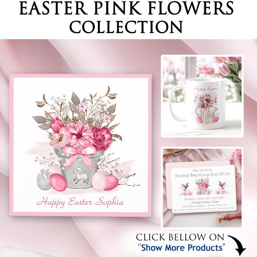 Linda aquarela flores de primavera e ovos de Páscoa Café Mug de rosa. Personalize facilmente o texto. Itens correspondentes e mais designs semelhantes estão disponíveis na minha loja.