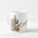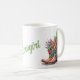 Caneca do templo ocidental, com trabalho de arte adorável de um par de botas coloridas de vaqueira e cacto e flores. O texto personalizado verde lê Cowgirl, e pode ser personalizado para ler o que você quer. Excelente de presente para ela.
