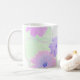 Uma caneca bonito com flores coloridas mais suaves com espirais e fios de pérolas delicadas.