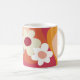 design de estilo retrógrado abstrato com flores florescentes e decoração de ondas amarelas, laranja e cor-de-rosa sobre fundo cor-de-rosa pastel