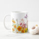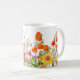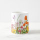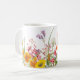Lindas flores de um jardim espalhadas ao redor de uma caneca. Uma vista agradável para estar numa caneca.