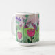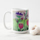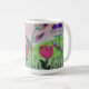 Flores bonito desenhadas à mão criadas como arte mestiça são apresentadas nesta caneca de café com várias pétalas e folhas coloridas, uma adição muito colorida à sua coleção, enquanto você bebe sua bebida favorita.