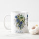 Ilustração botânica antiga de flores-belhas em azul, roxo e branco.