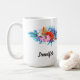 Caneca De Café Flores Tropicais Exóticas - Rosa e Aqua