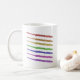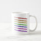Você gosta de canecas com tema musical? Você conhece um flautista? Um design de flautas divertido feito em vermelho, laranja, verde, amarelo, azul, rosa e roxo.