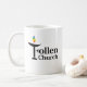 Uma caneca com a imagem do logotipo da Igreja Follen.