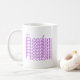 Esta elegante caneca de café apresenta a palavra Liberdade repetida em uma pilha cursiva fluida, sombreada em gradientes roxos ricos que evocam força, serenidade e auto-expressão.