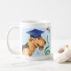 Felicite o seu formando favorito com um presente com um formando Airedale Terrier feliz vestindo um quadro-morteiro em meio a uma pancada de confete.