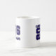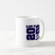 A caneca de café cerâmica de mais velho Formando é mostrada num design de cor azul e branca. Personalize este item ou comprar conforme mostrado. Impressão licenciado