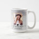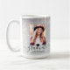 Esta caneca de café personalizada com duas fotos é perfeita para um presente de formatura. O modelo de design apresenta duas fotos para você mudar para o seu próprio fundo em uma cinza e o fundo dourado brilha no fundo da aquarela. Abaixo, lê-se "Formando" em uma escritura negra moderna com seu nome, escola e ano para você personalizar com um boné de formatura negro. Desenhada por Susan Coffey.