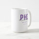 Uma grande caneca de graduação em doutorado que apresenta o nome do formando, o campo de estudo e a data de formatura. A caneca inclui o nome em uma fonte de script de escrita manual e um design roxo e preto. É excelente como um guardião ou um favor do partido. Basta adicionar as informações do formando, adicionar esta caneca ao seu carrinho e parabéns neste marco importante! Formando Nome Roxo PhD Grande Café Mug Holidayday Design | ©Melissa Patton - Designer
