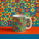 Um padrão de formas coloridas que estão em um padrão mesmerizador. Esta design parece realmente eficaz nestas Mug