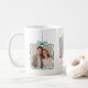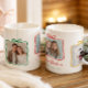 Espalhe a alegria sazonal com esta elegante e personalizável caneca de café. Com três recortes de fotos estilhaçados como ornamentos pendurados com arcos coloridos de natal, este design é perfeito para mostrar sua família, crianças e até seus amigos peludos. O claro fundo branco destaca a mensagem festiva, "Felizes Feriados", em um roteiro gracioso. Uma maneira moderna, mas emocionante, de enviar amor e alegria aos amigos e à família nesta temporada de festas.