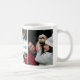 Caneca de café namorado personalizada com um modelo de colagem de 6 fotos, a palavra "mundos com maior namorado" em uma letra de gradiente azul de folha de tendência, e seus nomes.